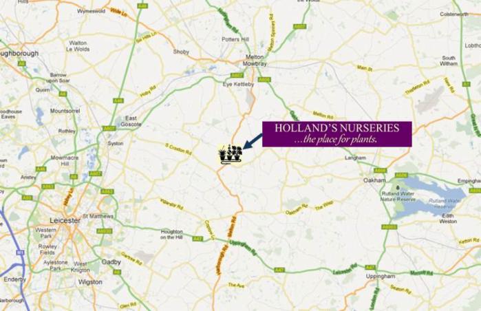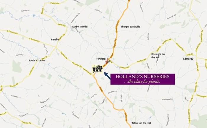Holland's Nurseries is just South of the village of Twyford on the B6047.
